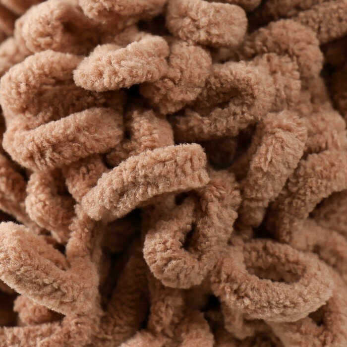Пряжа плюшевая Alize Puffy Fine (Пуффи Файн) - 5 мотков 329 молочно-коричневый, для вязания рукми, маленькие петельки (2см), 100г 14м