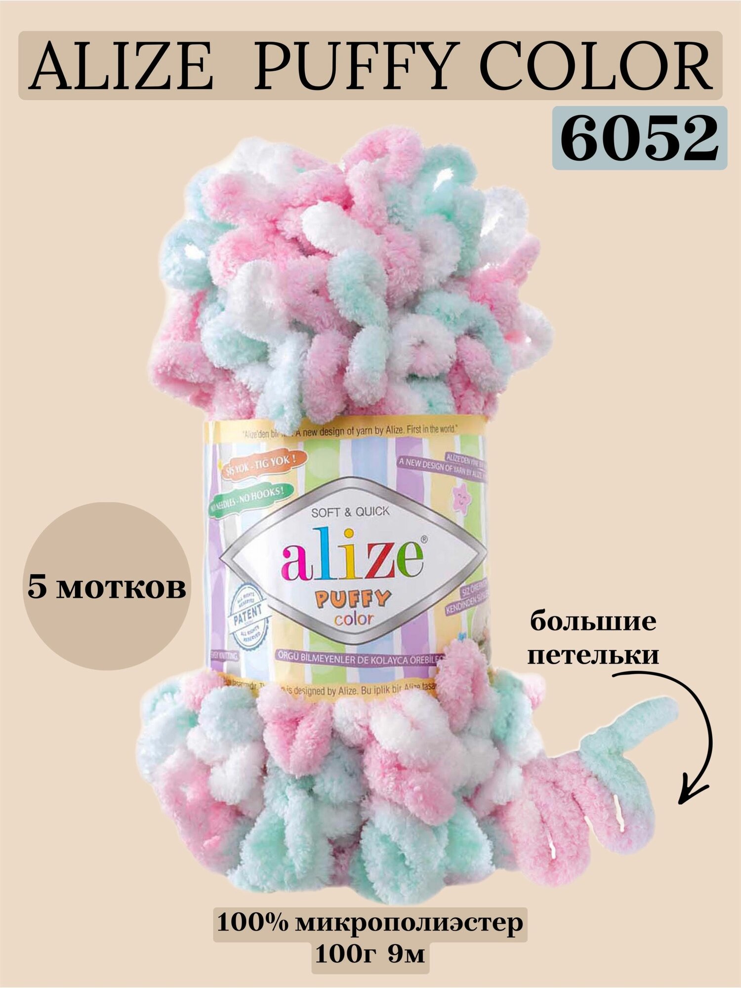 Купить Пряжа для вязания плюшевая Alize Puffy Color, цвет 6052, 100г, 9м, 5 шт/упак