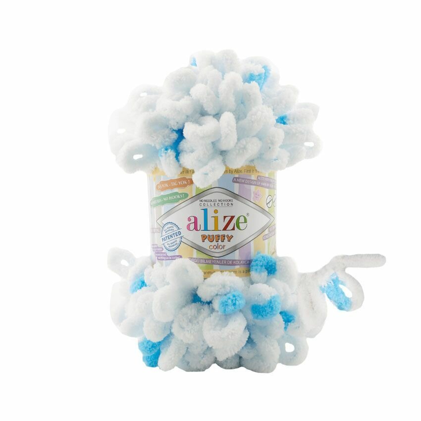 Пряжа Alize Puffy color белый-бирюза (5924), 100%микрополиэстер, 9м, 100г, 3шт