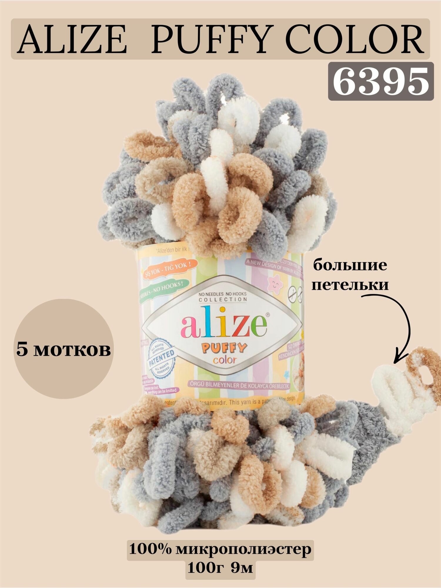 Пряжа PUFFY COLOR (Alize), беж-сер-бел - 6395, 100% микрополиэстер, 5 мотков, 100 г, 9 м.