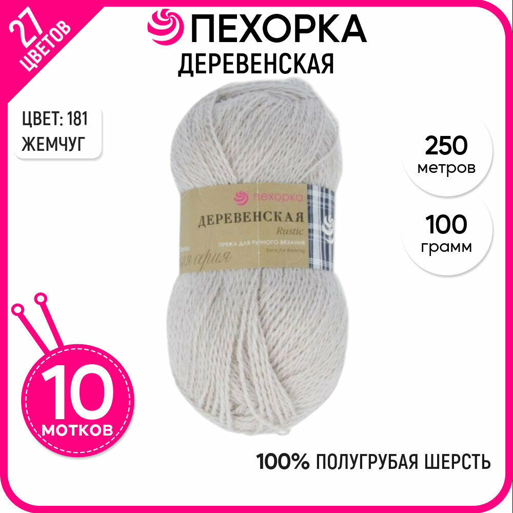 Пряжа Пехорка Деревенская цвет 181 жемчуг (100г/250м, упаковка 10 мотков)