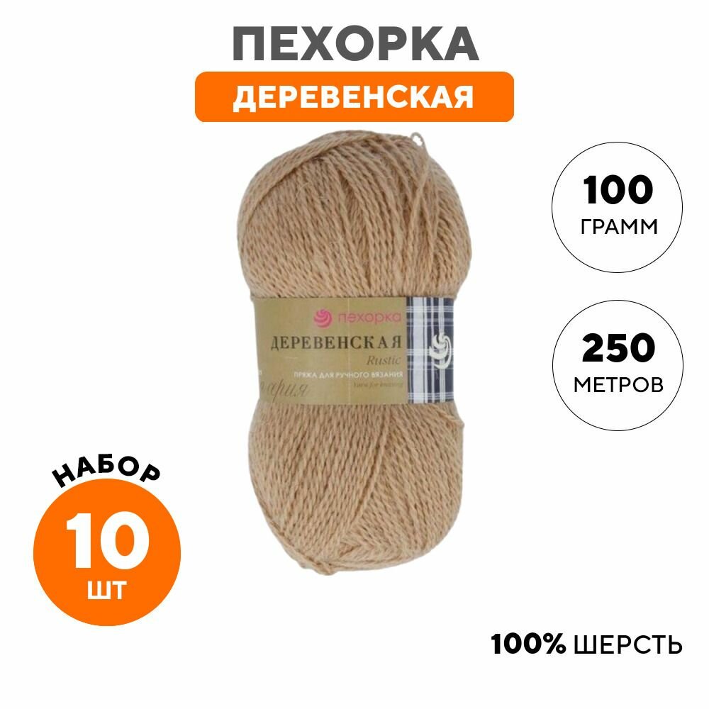 Пряжа для вязания Пехорка 'Деревенская' 100г, 250м (100% шерсть) (412 верблюжий), 10 мотков