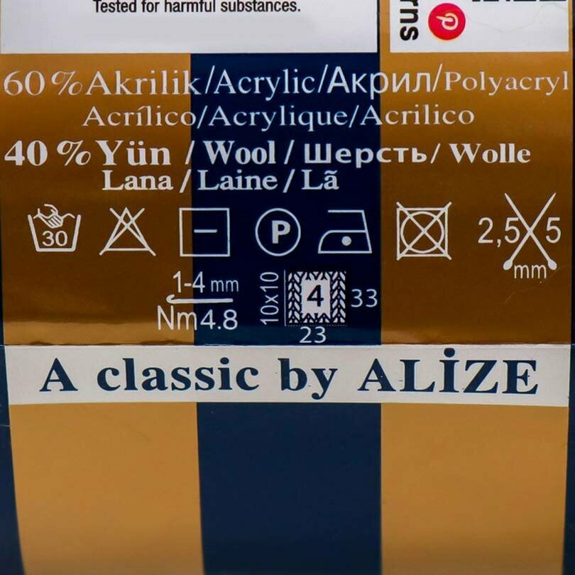 Пряжа ALIZE "Angora real 40", 100 гр 430 м, 40% шерсть, 60% акрил, 58 темно-синий, 5 шт