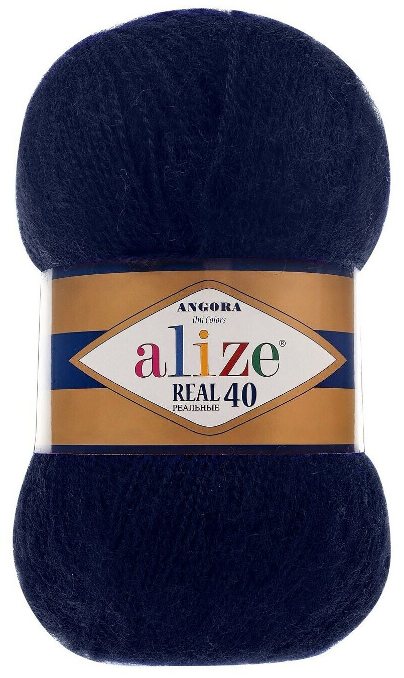 Купить Пряжа Alize Angora Real 40 (Ангора Реал 40) - 1 шт цвет 58 темно синий 40% шерсть, 60% акрил 100г 480м