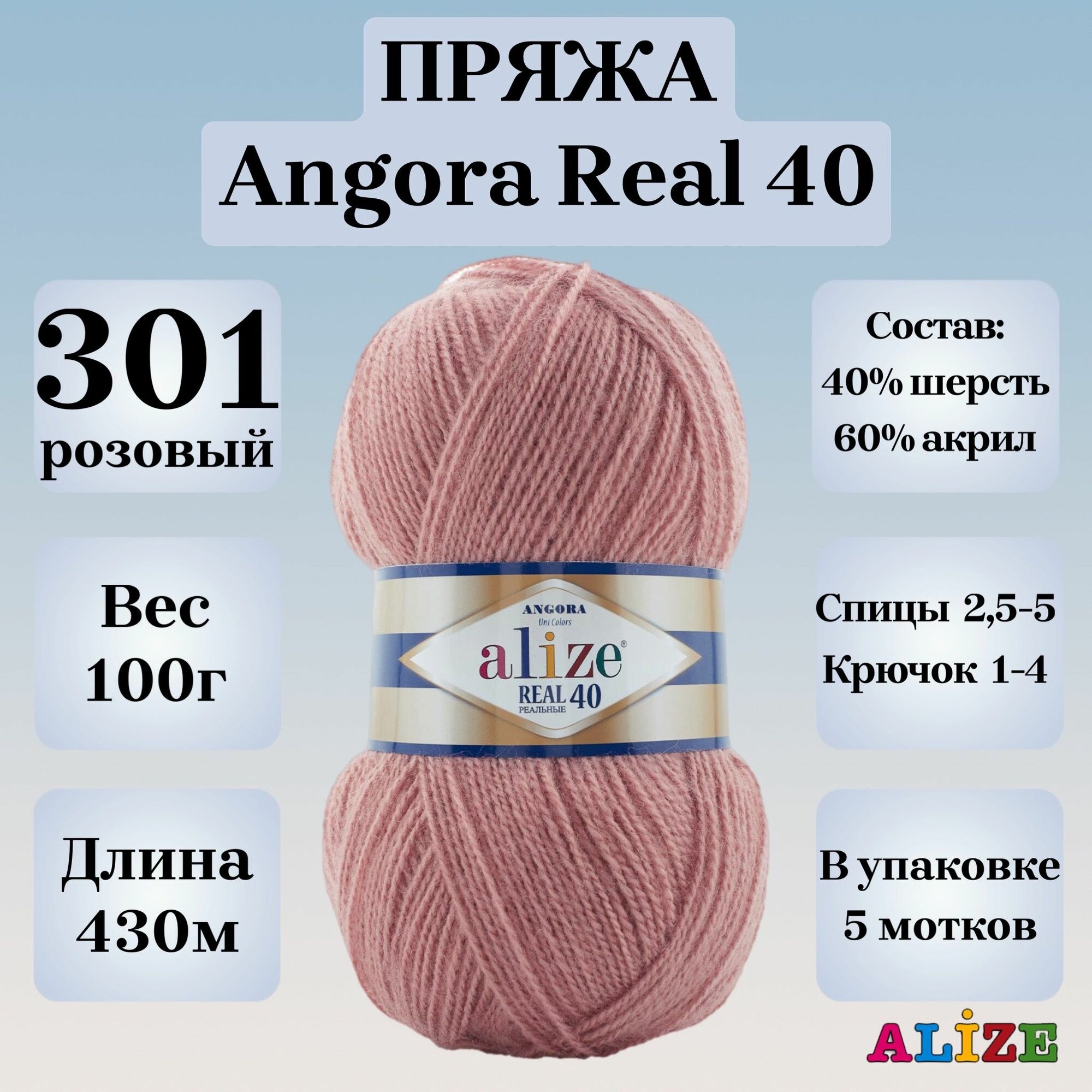 Пряжа ALIZE ANGORA REAL 40, св. брусника - 301, 40% шерсть, 60% акрил, 5 мотков, 100 г, 430 м.