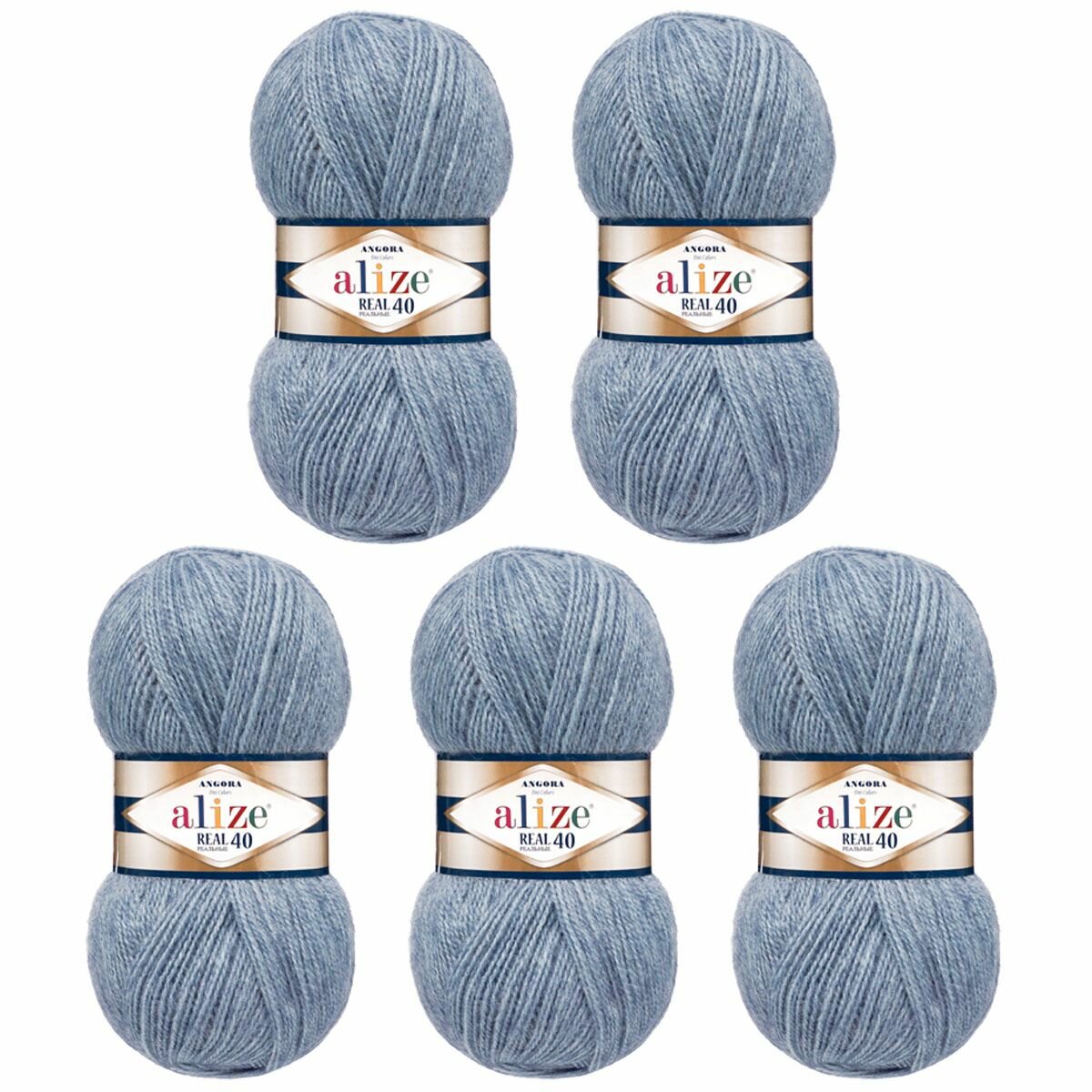 Пряжа Alize Angora Real 40 (Ангора Реал 40) - 5 мотков цвет 40 голубой 40% шерсть, 60% акрил 100г 480м