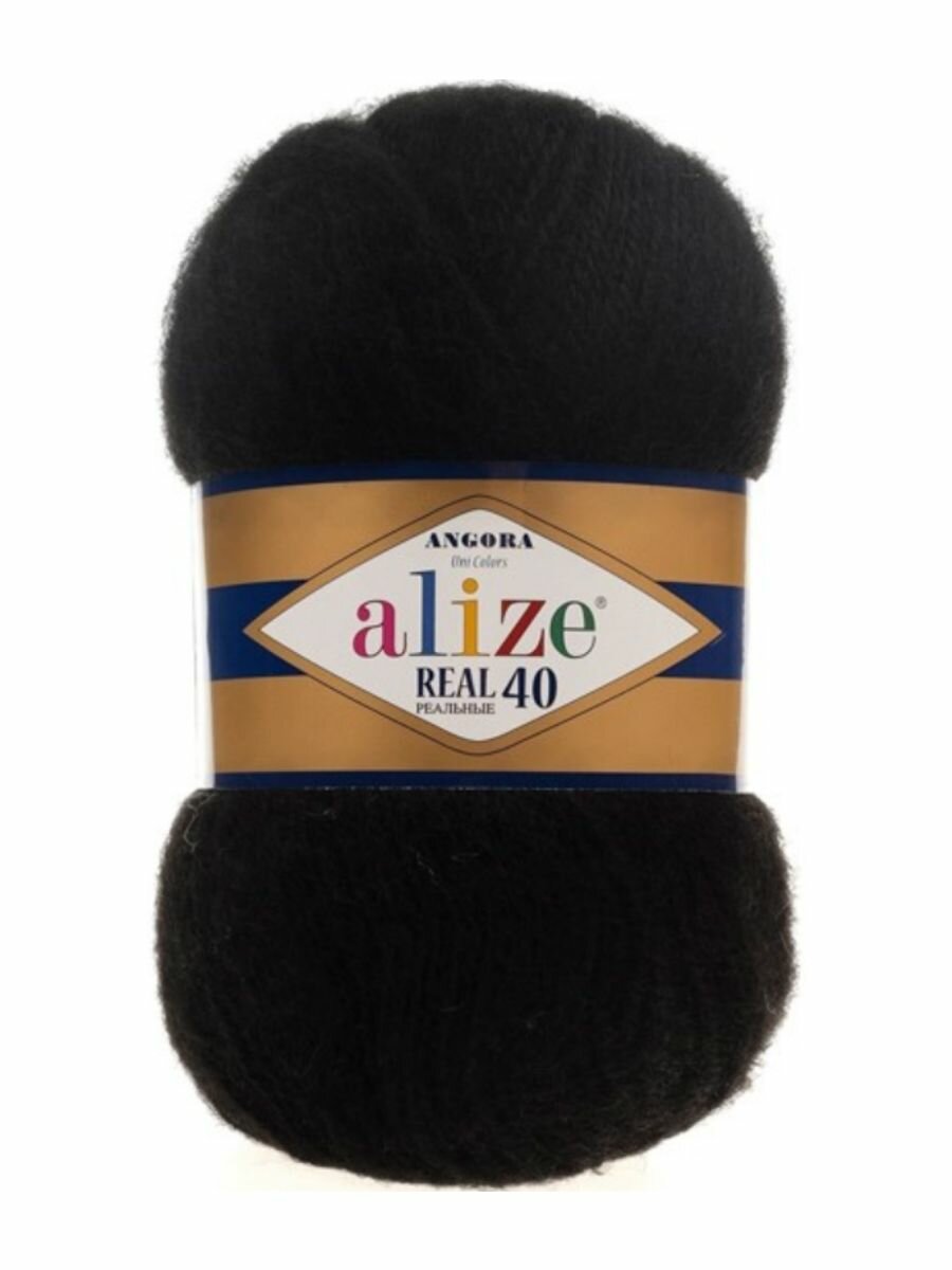 Пряжа ALIZE ANGORA REAL 40, черный - 60, 40% шерсть, 60% акрил, 5 мотков, 100 г, 430 м.