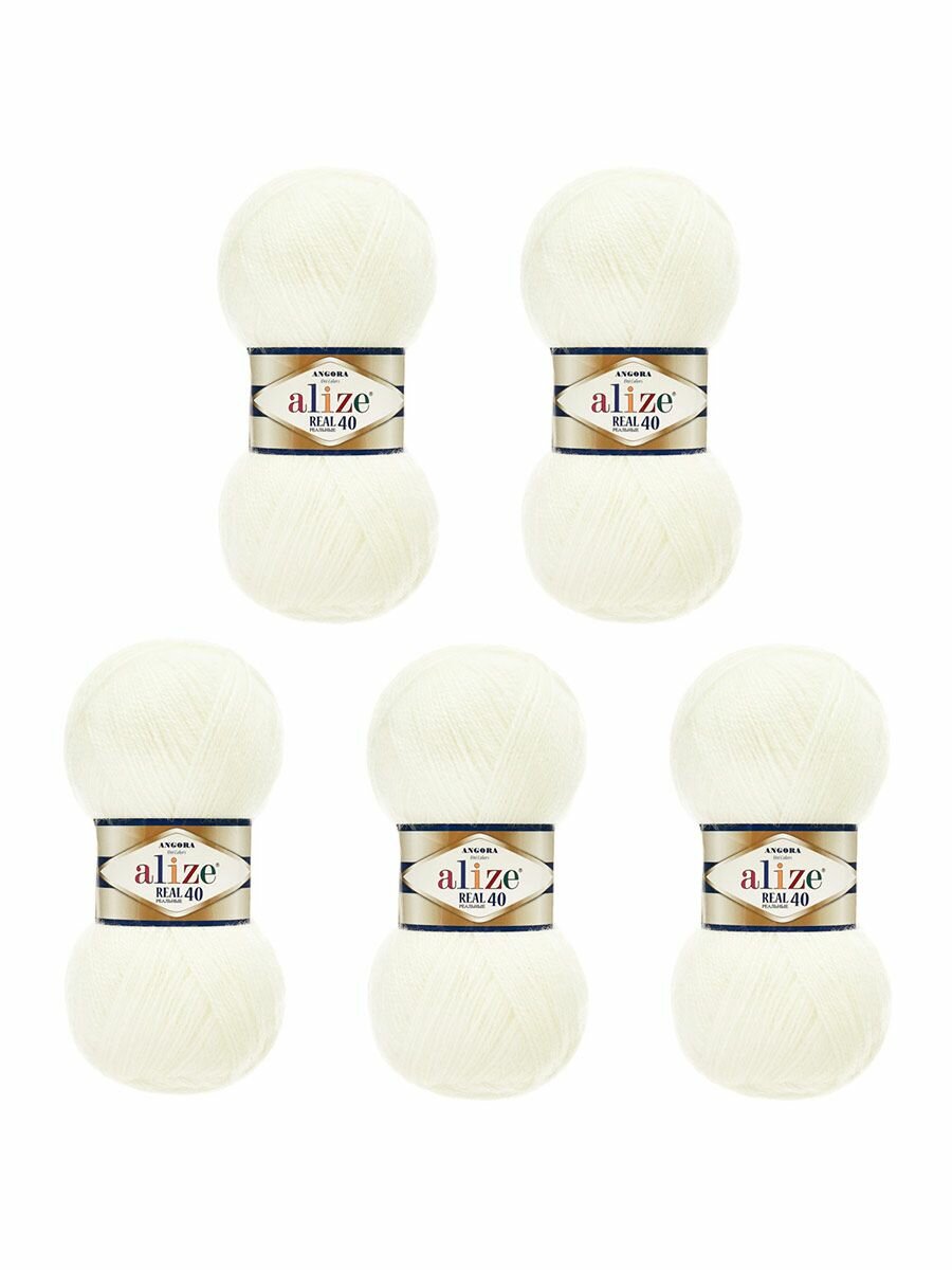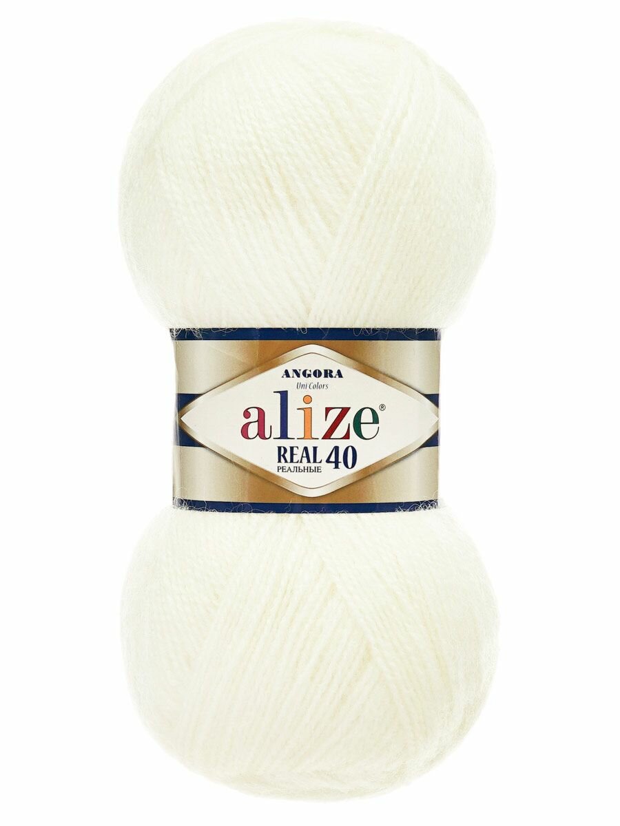 Пряжа ALIZE ANGORA REAL 40, кремовый - 01, 40% шерсть, 60% акрил, 5 мотков, 100 г, 430 м.