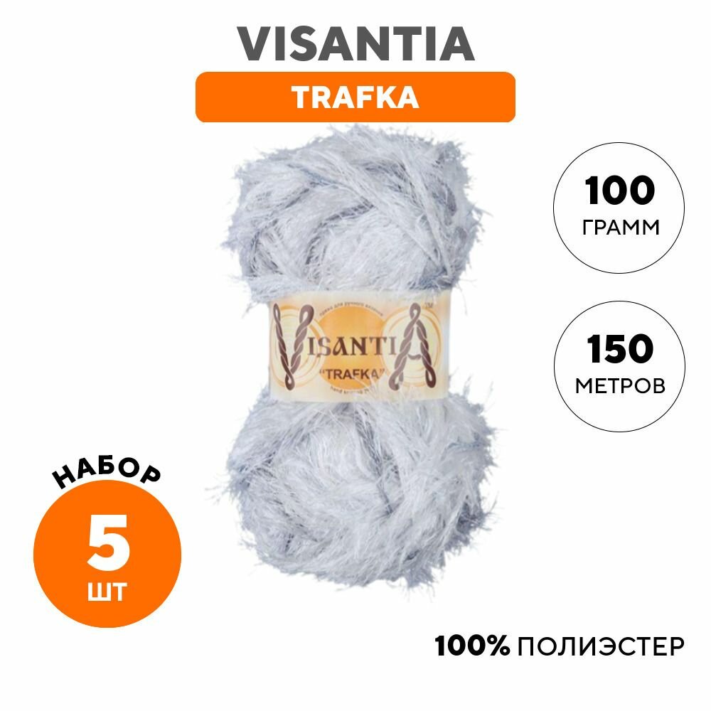 Пряжа Visantia Trafka melange белый-дымчатый (8550), 100%полиэстер, 150м, 100г, 1шт