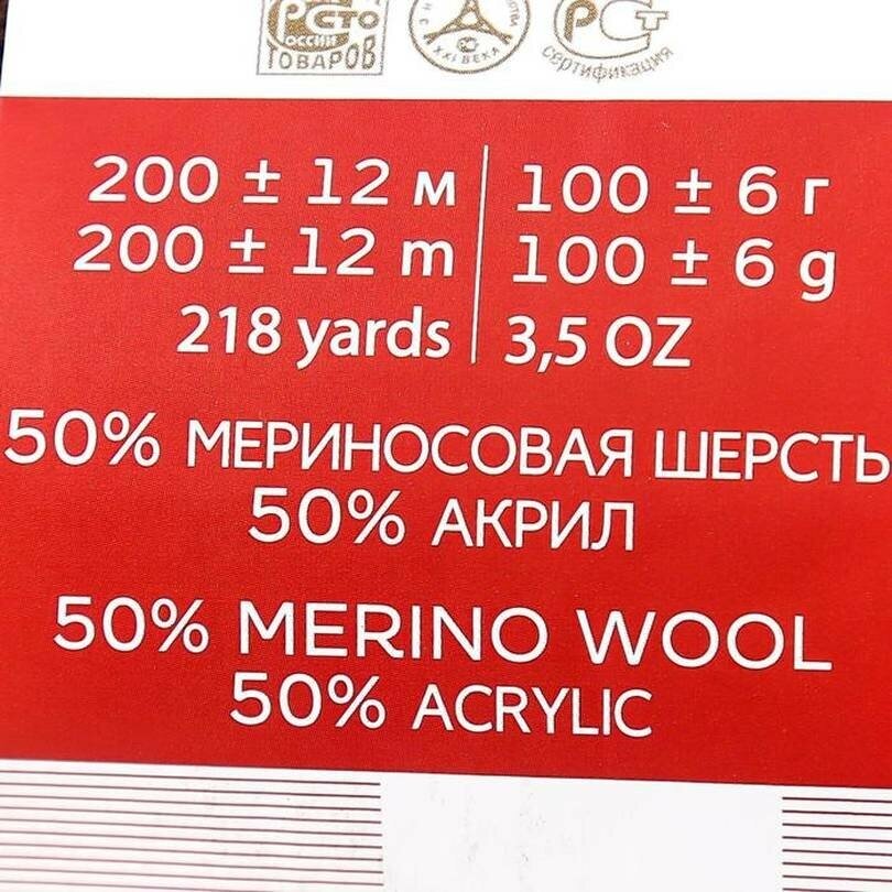 Пряжа Пехорка Мериносовая красный (6), 50%шерсть мериноса/50%акрил, 200м, 100г, 1шт