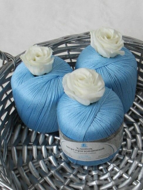 Пряжа Камтекс Хлопок мерсеризованный голубой (15), 100%мерсеризованный хлопок, 200м, 50г, 1шт