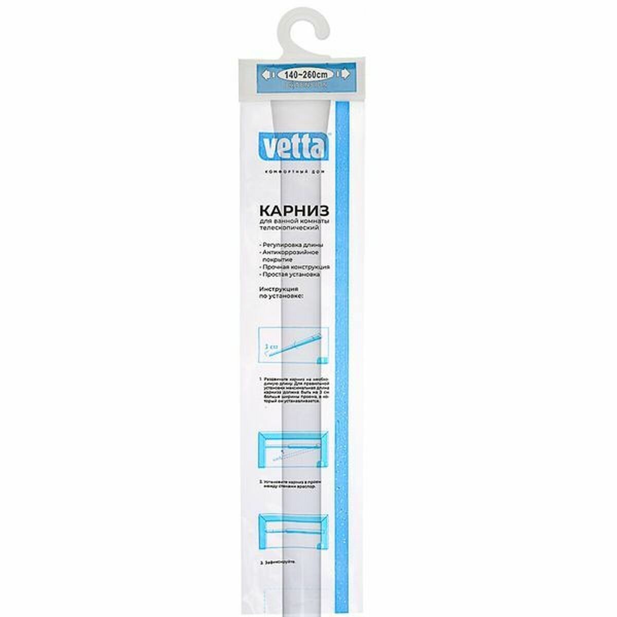 Карниз для ванной Vetta / Ветта телескопический, из алюминия белого цвета, длина 2.6м / штанга для шторы