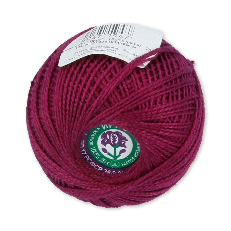 Нитки вязальные "Ирис" 25г., хлопчатобумажные, цвет: 1410 т.малиновый, 150м., 1 шт