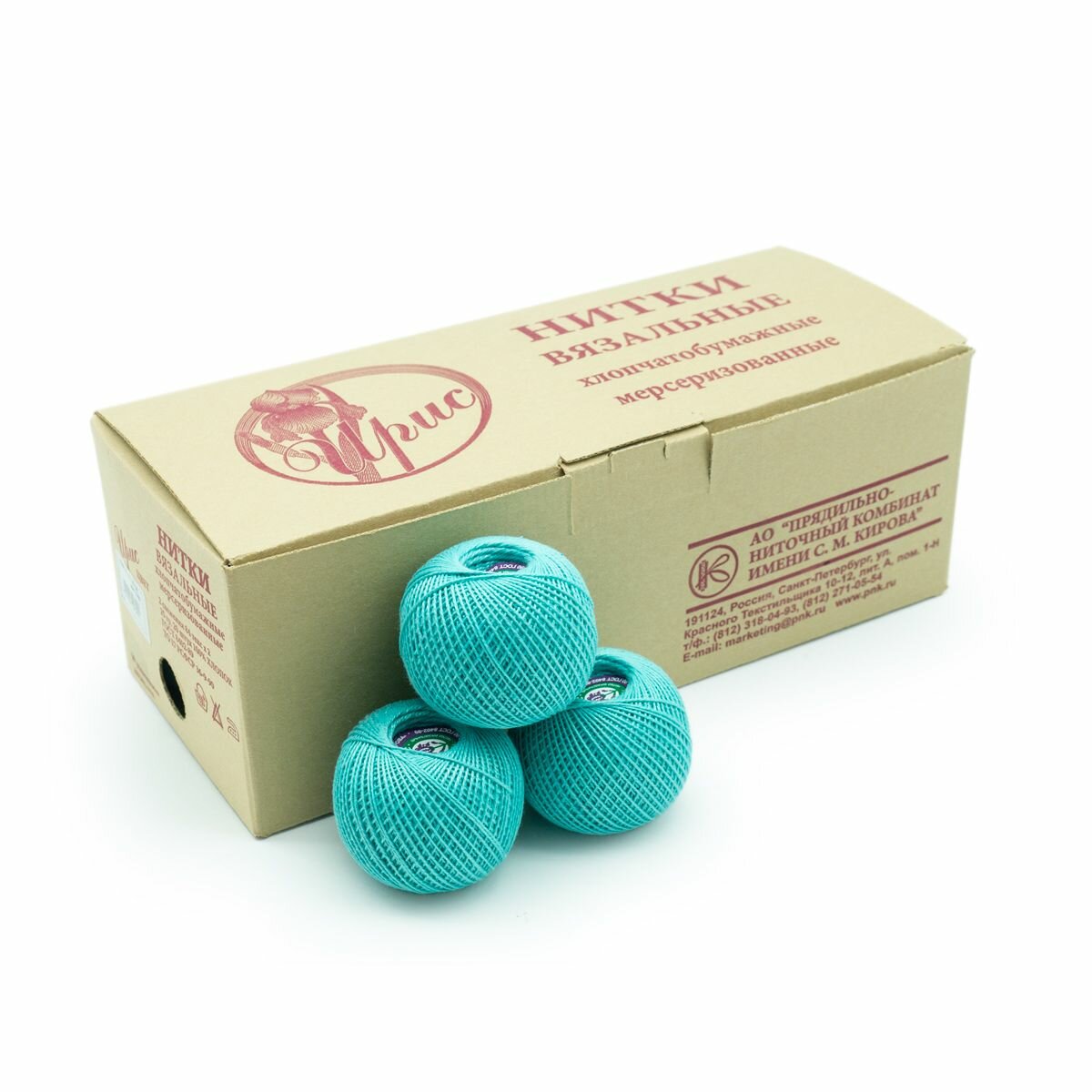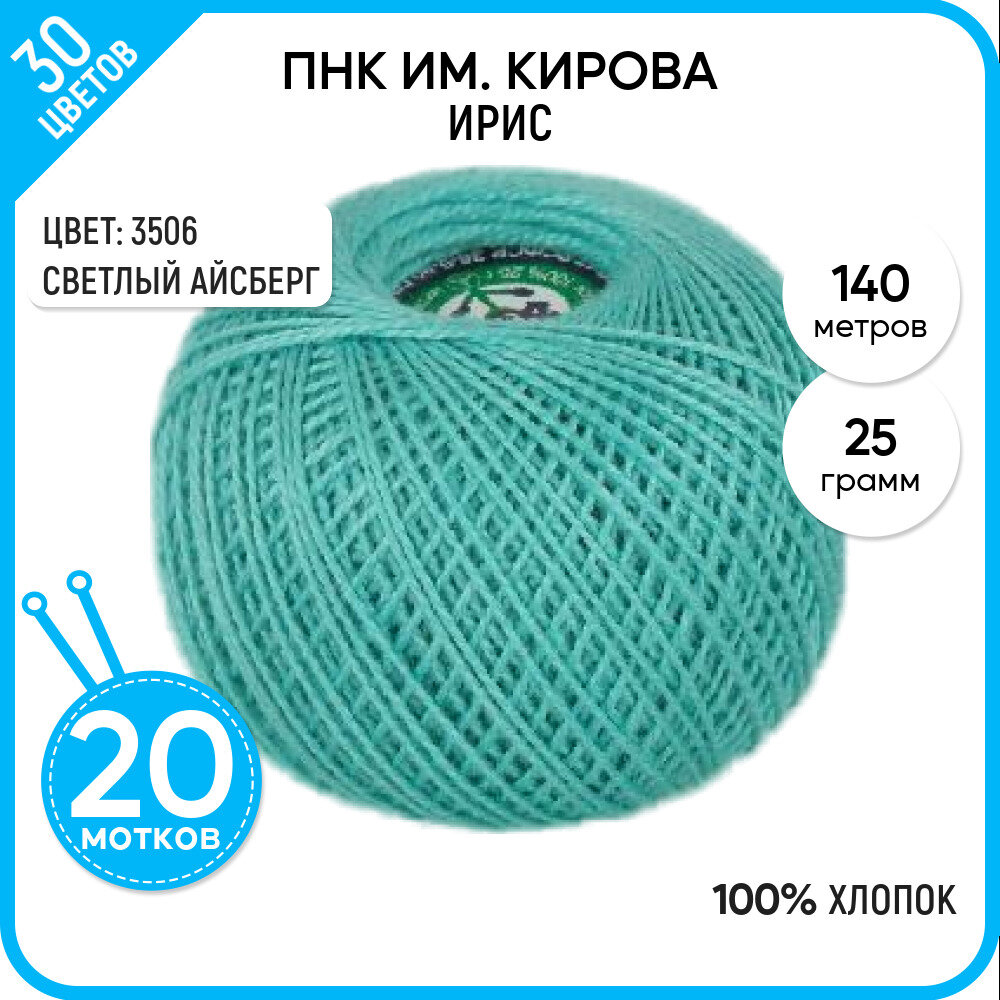 Нитки вязальные ПНК Кирова "Ирис", 100% хлопок, 20 шт по 25 г, 150 м, цвет 3306, бирюза (ирис.3306)
