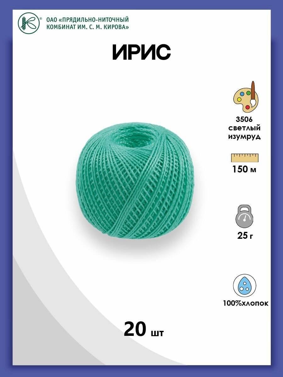 Нитки вязальные ПНК им. Кирова Ирис", 100% хлопок, 20 шт по 25 г, 150 м, цвет 4506, зеленый (ирис.4506)