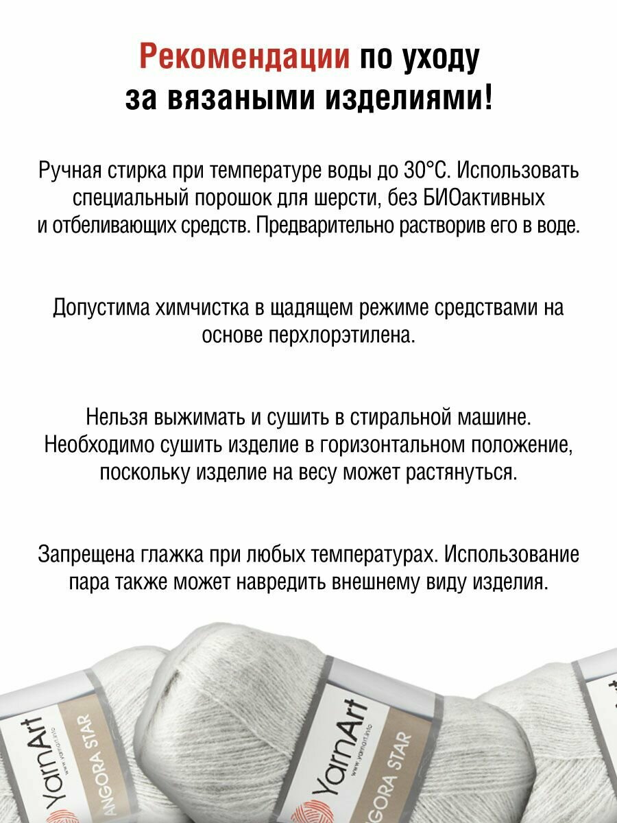 СохранитьПряжа для вязания YarnArt 'Angora Star' 100гр 500м (20% тонкая шерсть, 80% акрил) (282 серое небо), 5 мотков интересное: