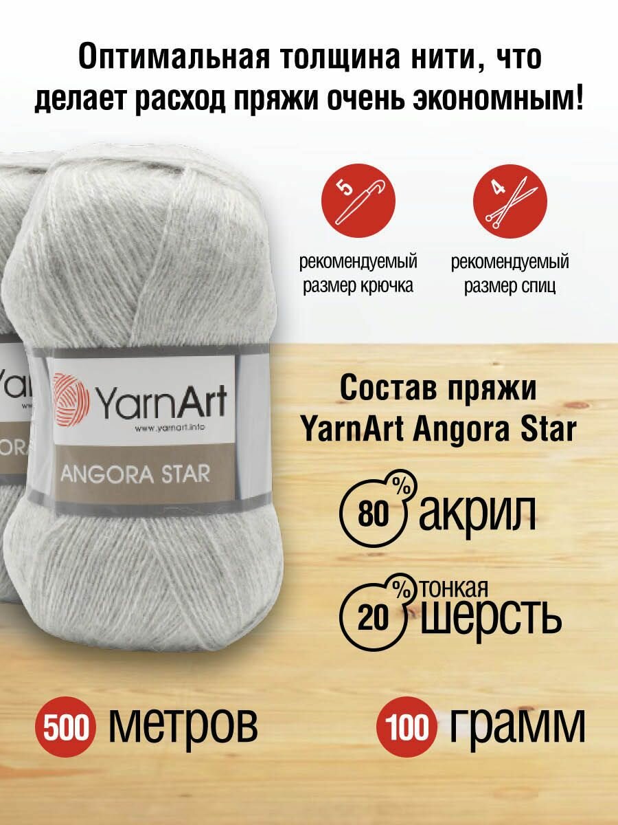 Пряжа для вязания YarnArt 'Angora Star' 100г, 500м (20% тонкая шерсть, 80% акрил) (282 серое небо), 5 мотков