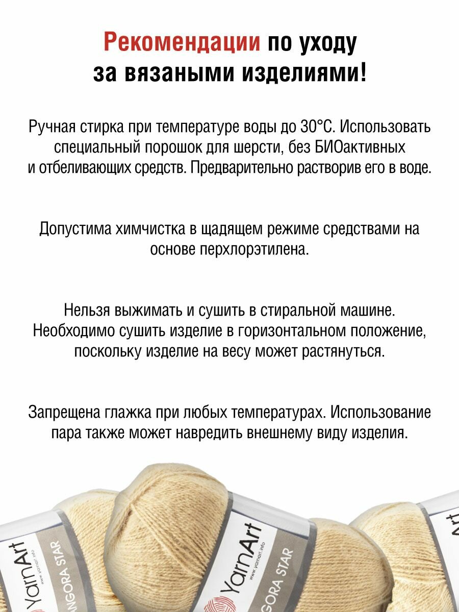 Пряжа для вязания YarnArt 'Angora Star' 100г, 500м (20% тонкая шерсть, 80% акрил) (7003 кремовый), 5 мотков