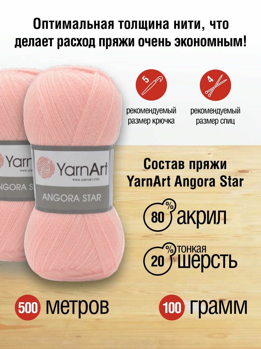 Пряжа Yarnart Angora Star бледно-розовый (649), 20%шерсть/80%акрил, 500м, 100г, 2шт