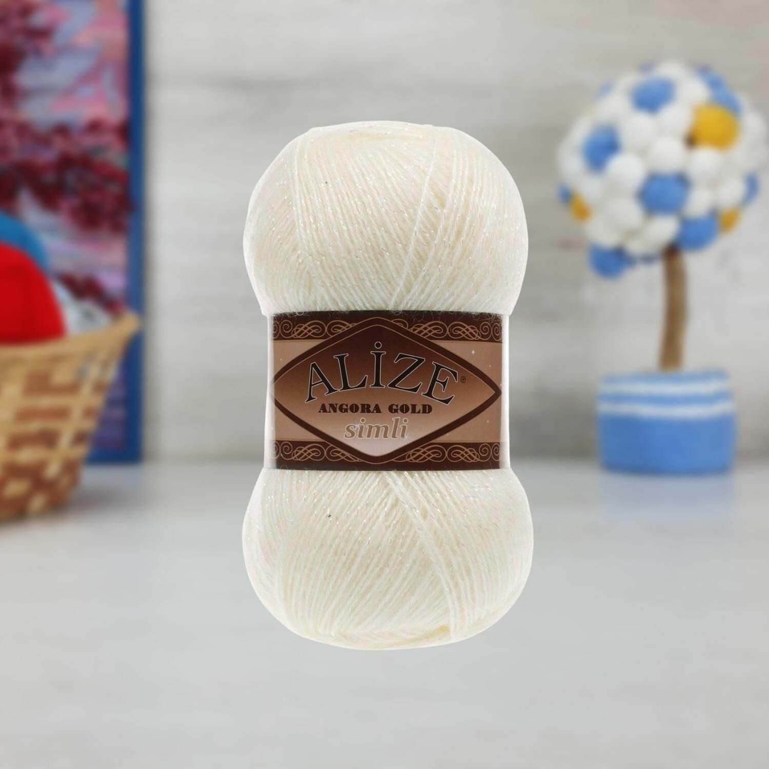 Пряжа для вязания Alize Angora Gold Simli, цвет 506 молочный бежевый, моток 100г, 500м, 5шт/упак