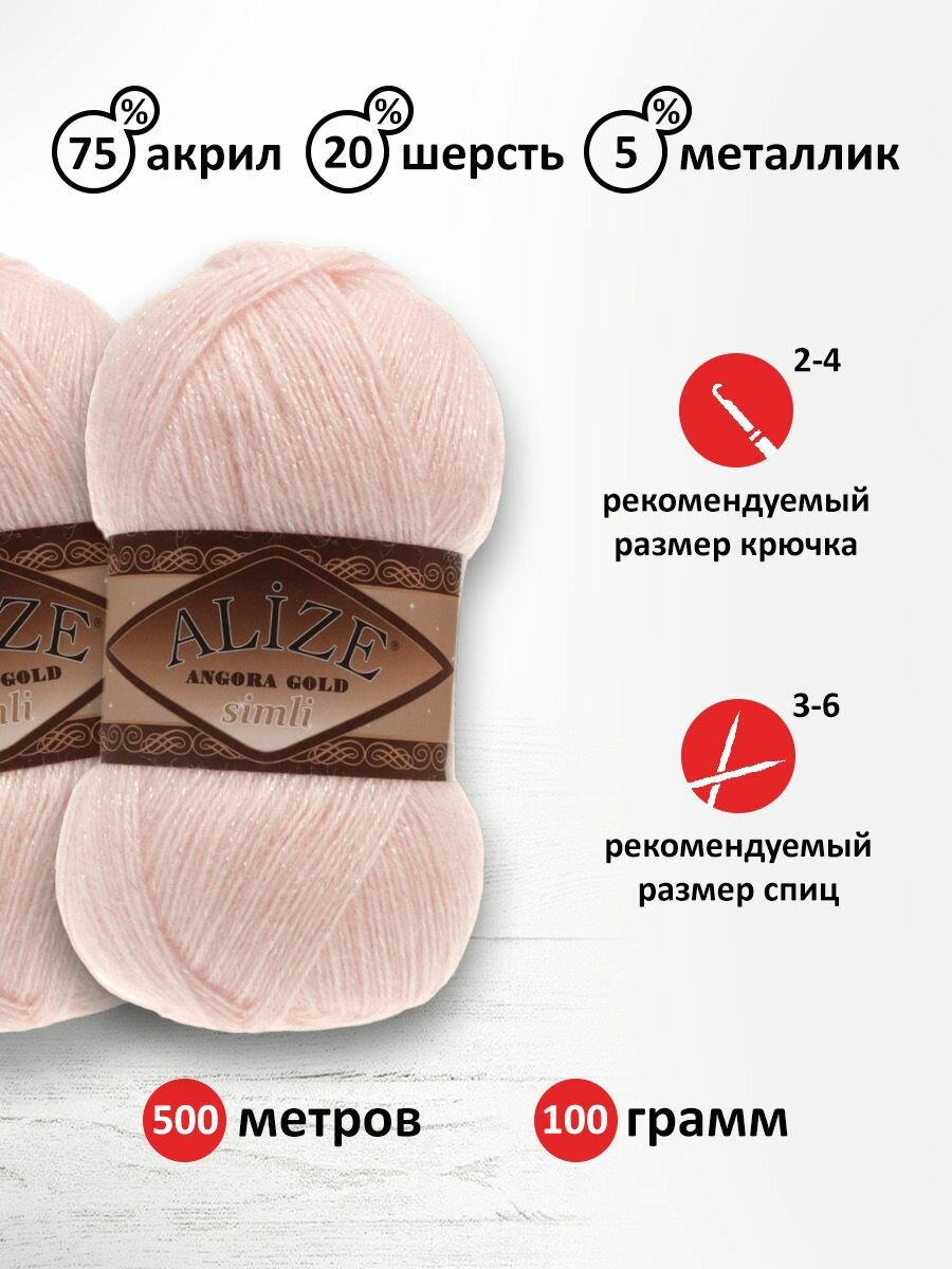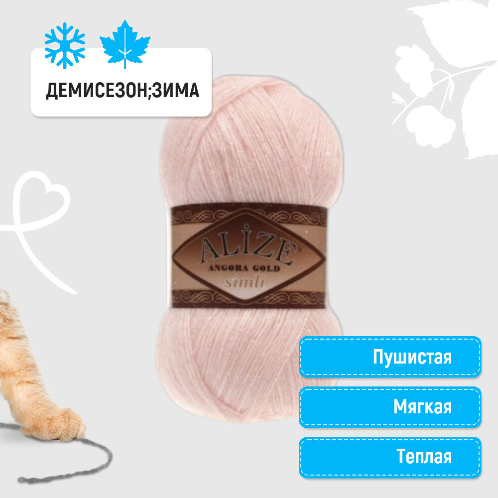 Купить Пряжа для вязания ALIZE 'Angora Gold Simli', 100г, 500м (шерсть, металлик, акрил) (271 жемчужно-розовый), 5 мотков