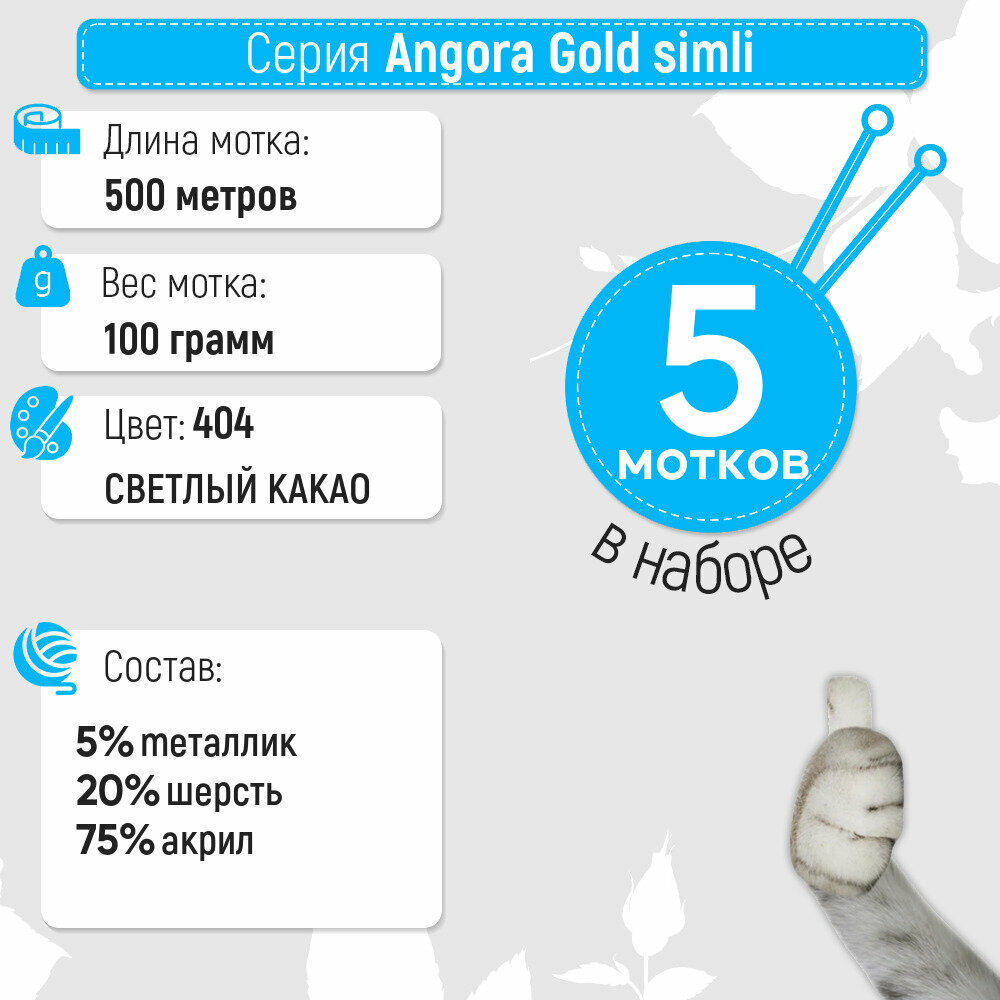 Купить Пряжа для вязания Alize Angora Gold Simli, цвет 404 шампань, моток 100г, 500м, 5шт/упак