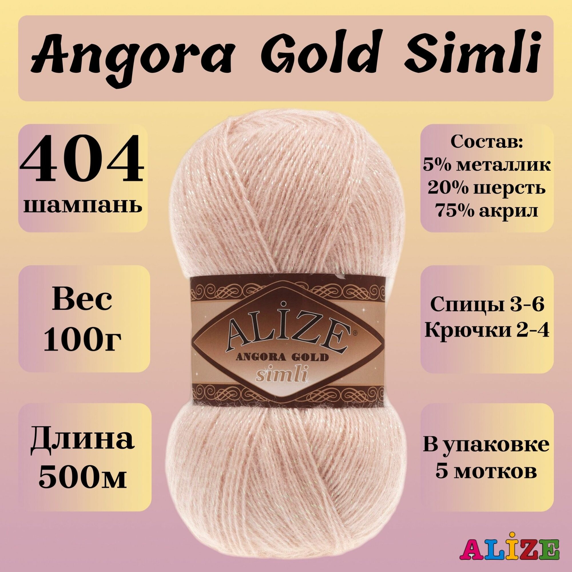 Пряжа для вязания ALIZE 'Angora Gold Simli', 100г, 500м (шерсть, металлик, акрил) (404 шампань), 5 мотков