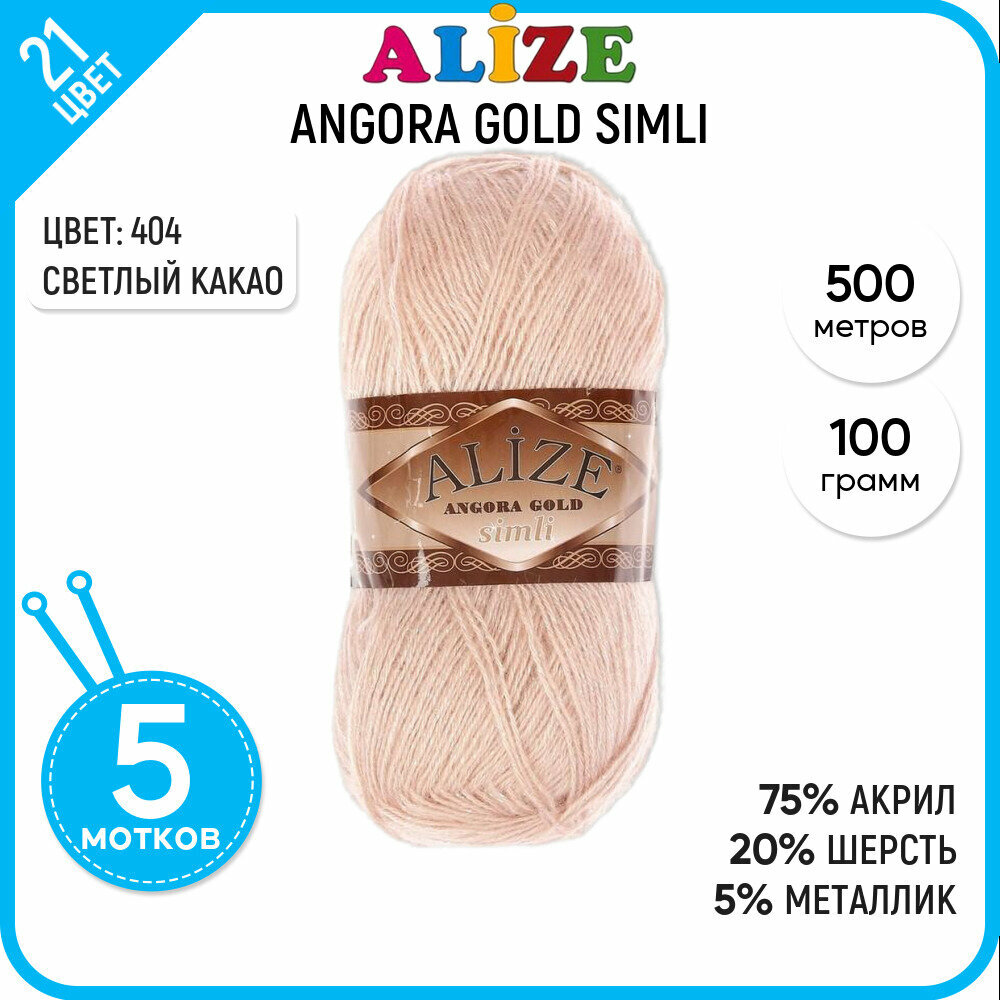 Пряжа Alize Angora Gold simli шампань (404), 75%акрил/20%шерсть/5%метанит, 500м, 100г, 5шт