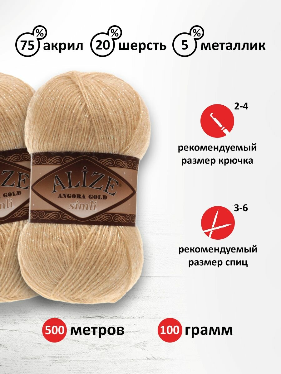Пряжа Alize Angora Gold Simli, 20 % шерсть, 75 % акрил, 5 % люрекс, 100 г, 500 м, 1 шт, 404 шампань