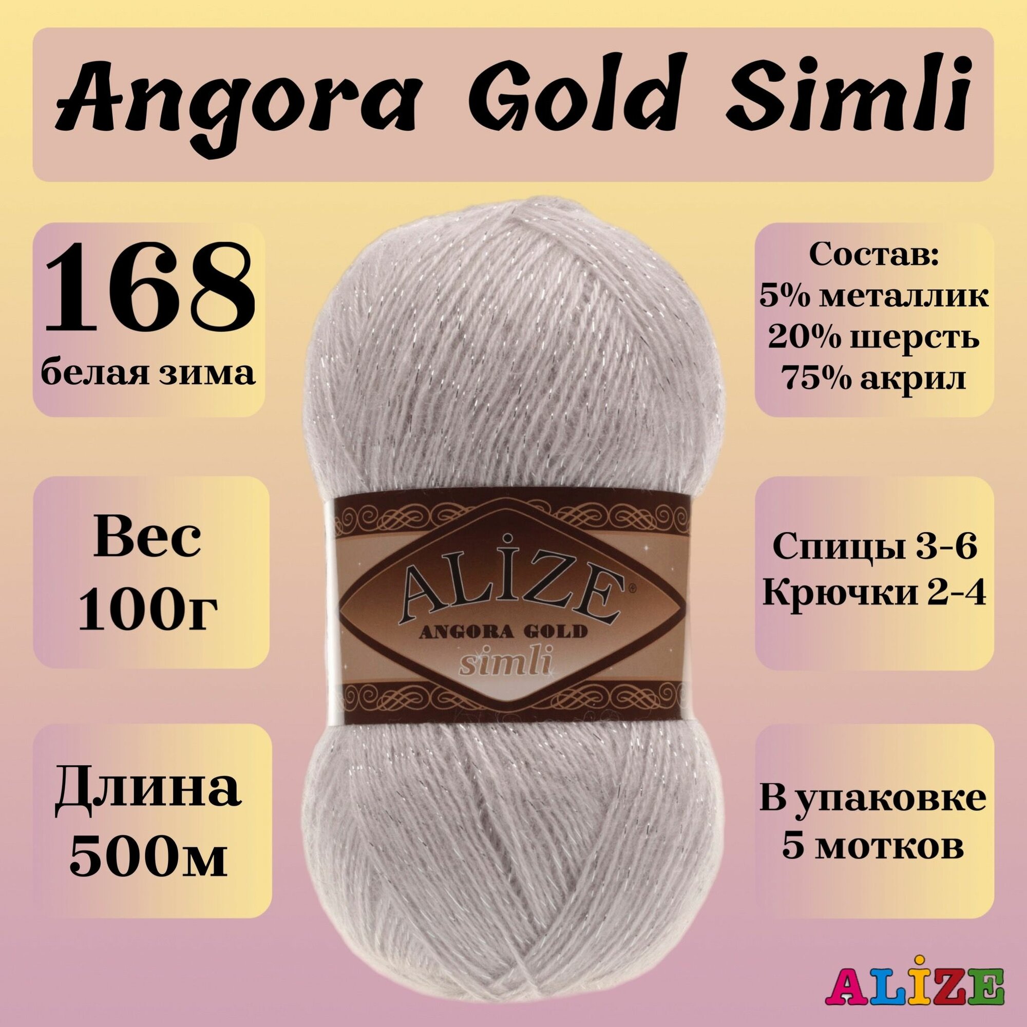 Купить Пряжа Alize Angora Gold simli ангора (168), 75%акрил/20%шерсть/5%метанит, 500м, 100г, 5шт