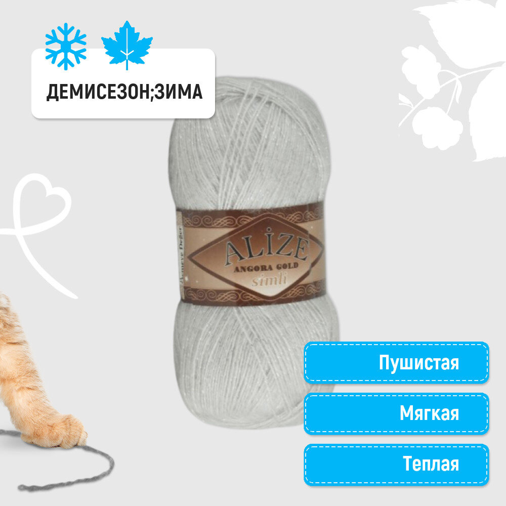 Пряжа для вязания ALIZE Angora Gold Simli Ализе Ангора Голд: 21 (серый), 3 шт 500 м 100 г, 5% металлик, 20% шерсть, 75% акрил