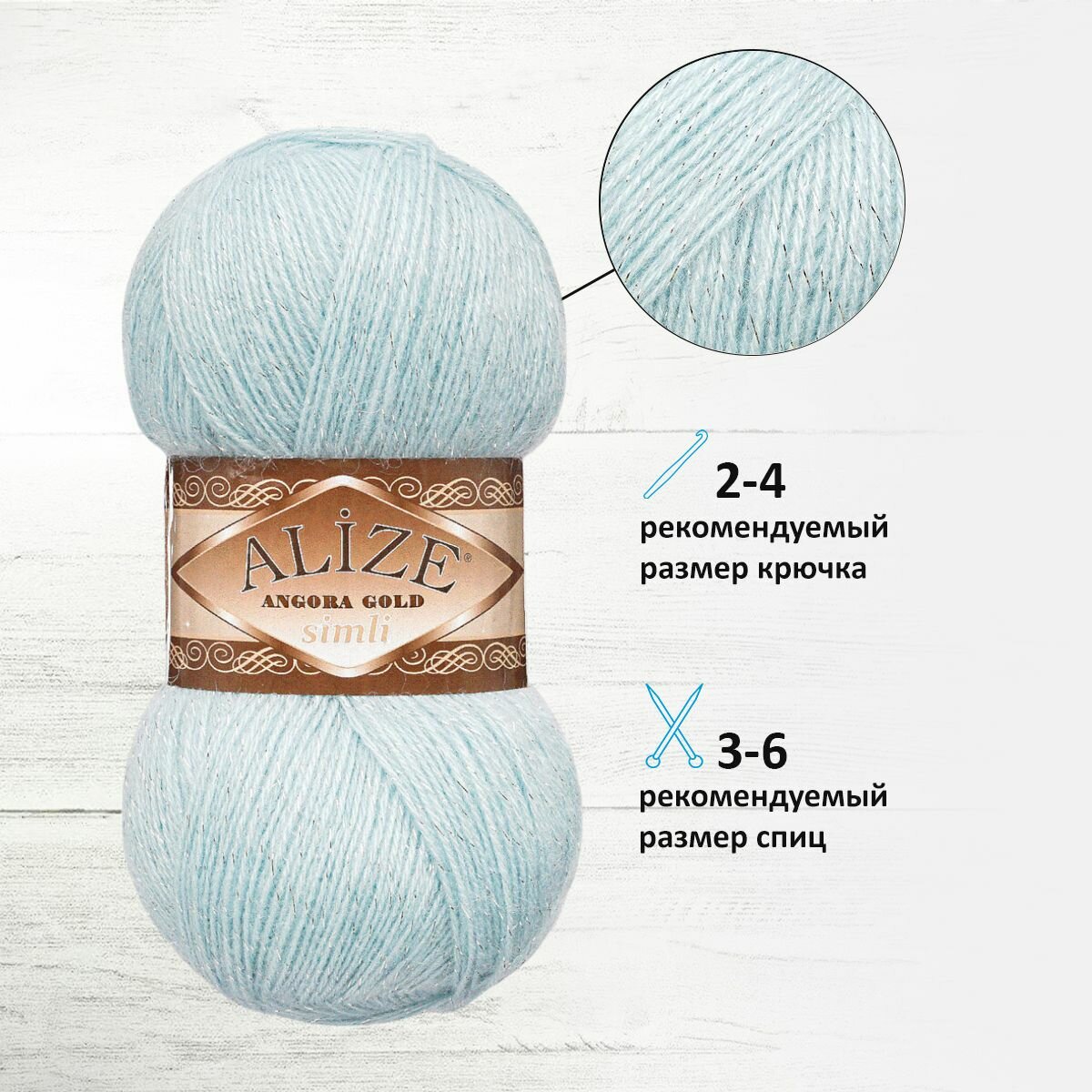 Пряжа для вязания Alize Angora Gold Simli, цвет 114 светло-голубой, моток 100г, 500м, 5шт/упак