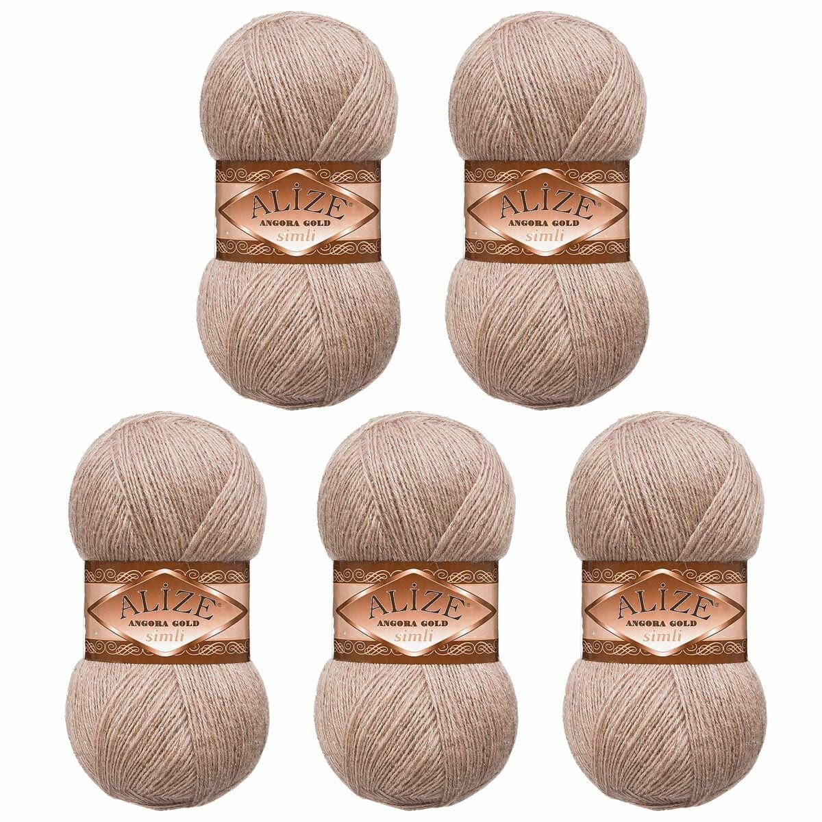 Пряжа для вязания ALIZE 'Angora Gold Simli', 100г, 500м (20% шерсть, 5% металлик, 75% акрил) (95 светло-бежевый), 5 мотков