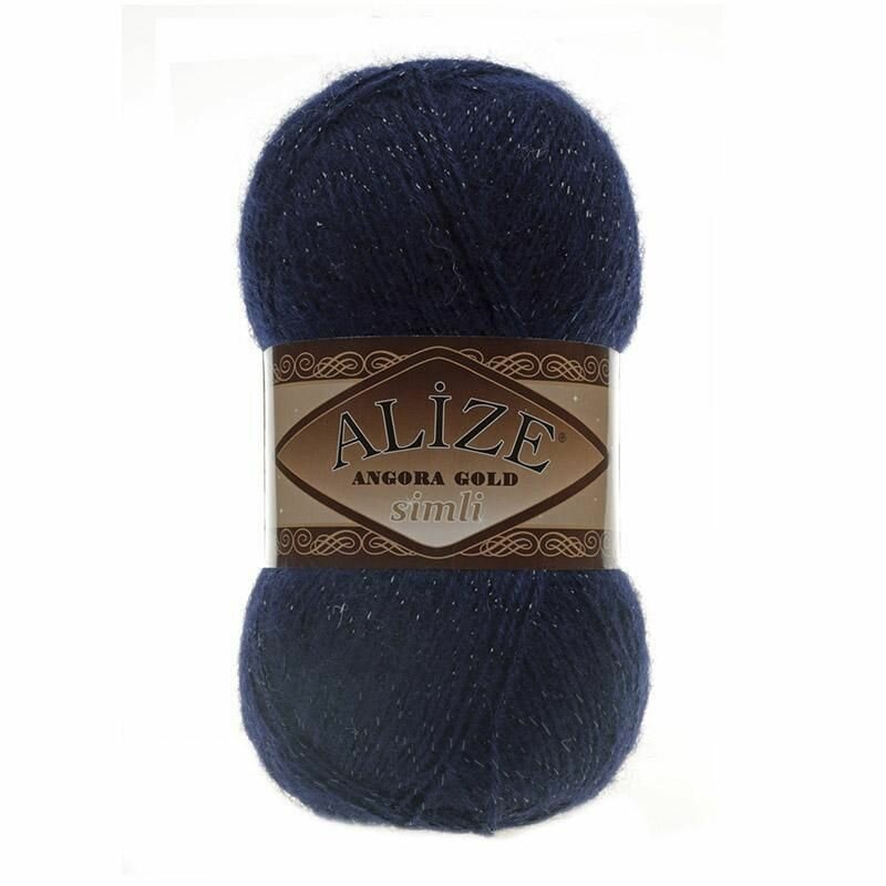 Пряжа ALIZE ANGORA GOLD SIMLI, темно-синий - 58, 5% металлик, 20% шерсть, 75% акрил, 5 мотков, 100 г., 500 м.