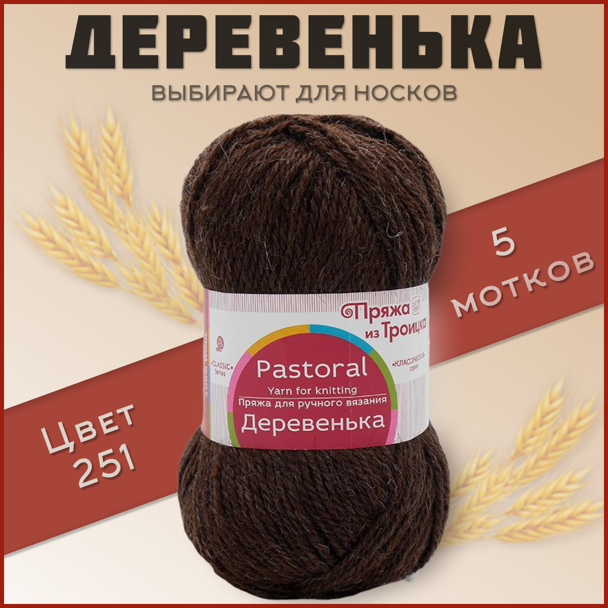 Пряжа для вязания из Троицка "Деревенька", 100% овечья шерсть, цвет: коричневый (251), 5 шт по 170 м/100 г