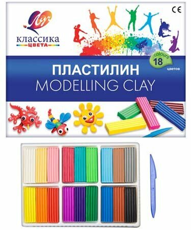 Пластилин 18 цветов 360г Луч "Классика", со стеком, картонная упаковка интересное: