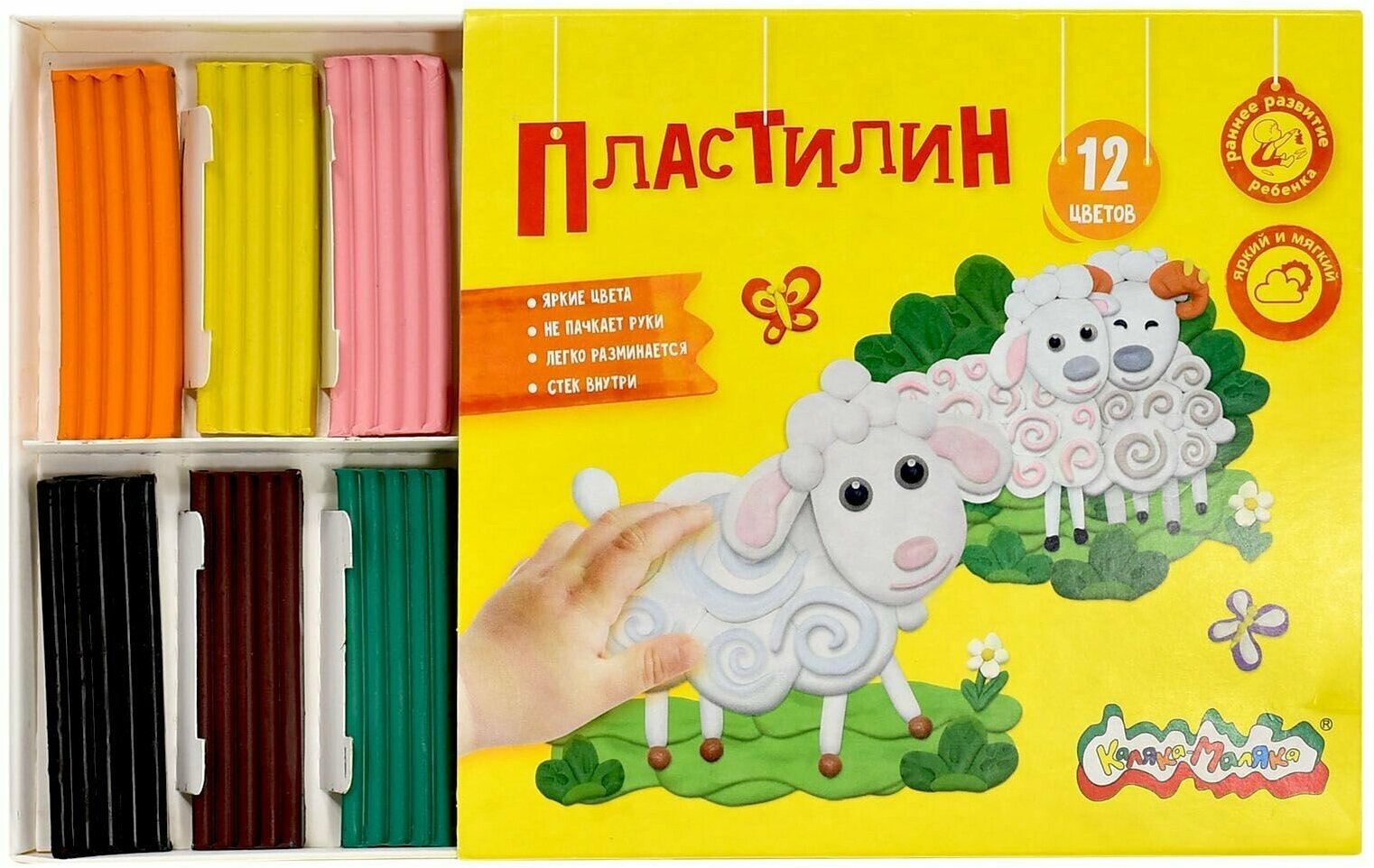 Пластилин 12 цветов Каляка-Маляка, 180г со стеком (ПКМ12), 16 уп.