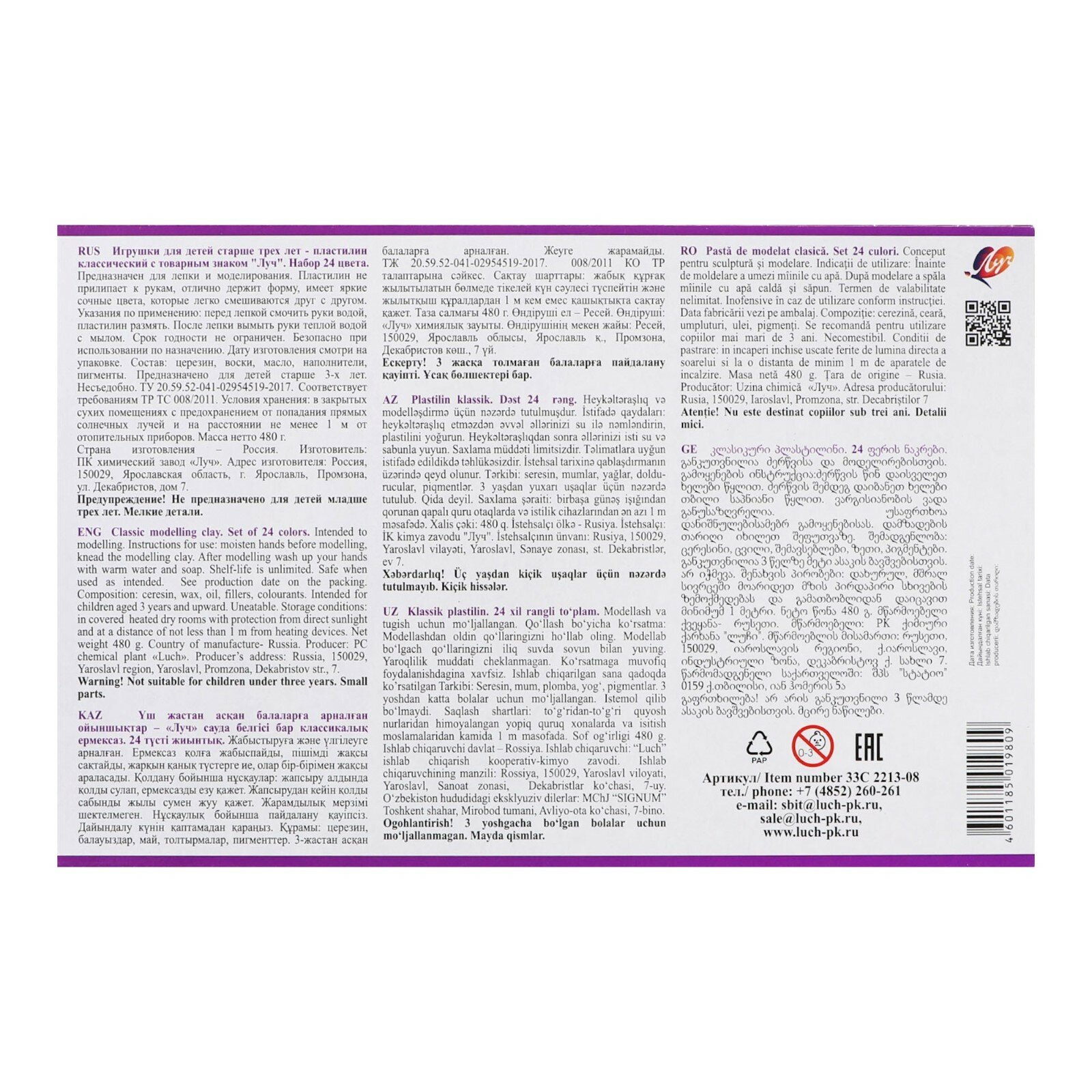 | Комплектация | 24 цвета со стеком / картонная упаковка / 480гр. |