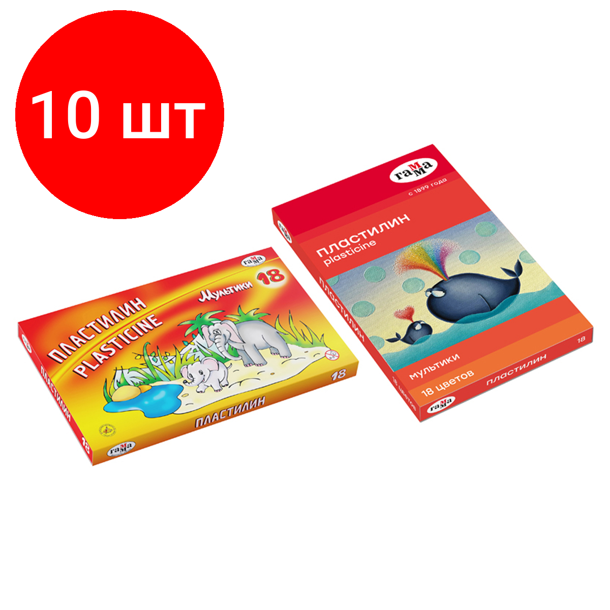 Комплект 11 шт, Пластилин Гамма "Мультики", 22 цвета, 440г, со стеком, картон. упаковка