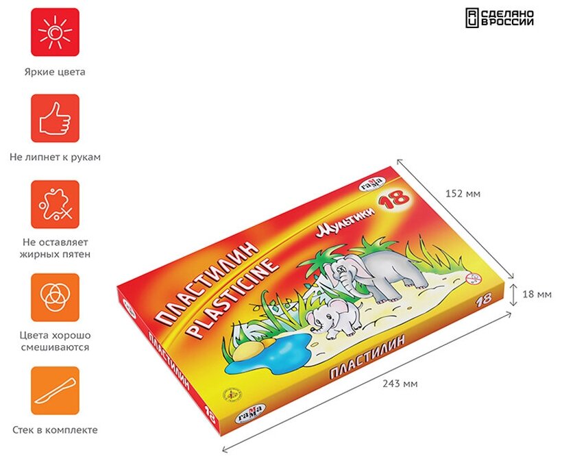 СохранитьПластилин Гамма Мультики 18цв 360гр со стеком к/к интересное: