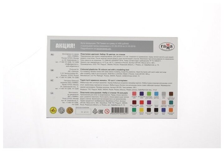 Ниже Вы можете прочитать отзывы на Пластилин Гамма "Классический", 18 цветов, 360г, со стеком, картон, ознакомится с подробными характеристиками, посмотреть интересные обзоры и фотографии на Пластилин Гамма "Классический", 18 цветов, 360г, со стеком, картон.