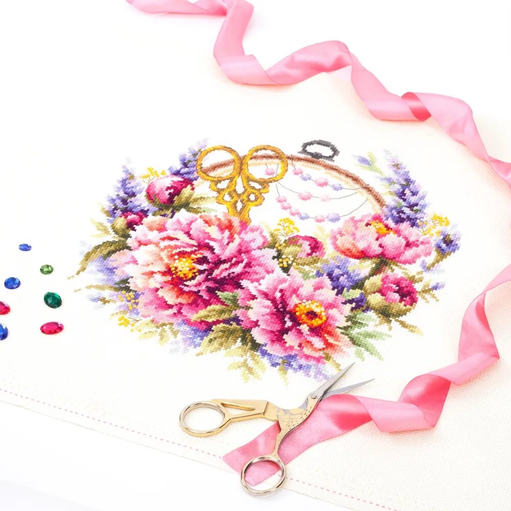 Купить Набор для вышивания крестом чудесная игла арт.100-124 Пионы для умелицы 25х25 см