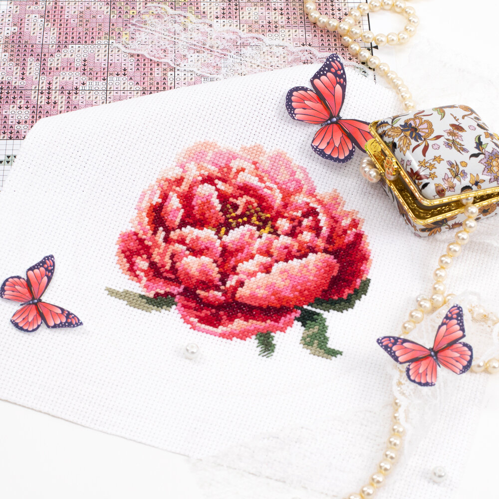 Набор для вышивания крестом "Пион" 11 х 11 см