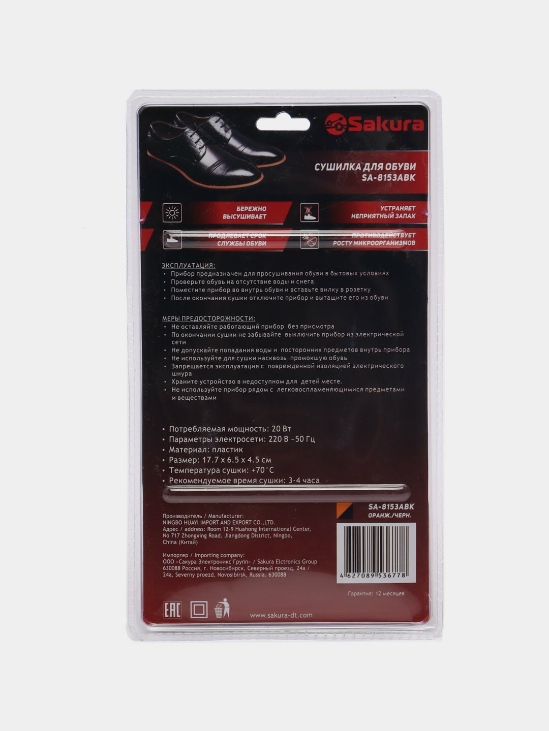 Купить Сушилка для обуви Sakura SA-8153ABK антибактериальная