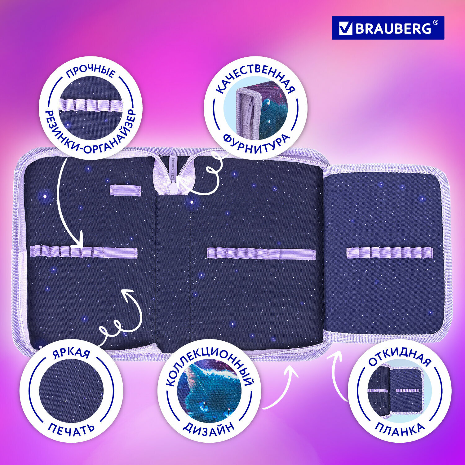 Купить Пенал BRAUBERG, 1 отделение, 1 откидная планка, полиэстер, 21х14 см, "Anime cat", 272322, в комплекте 1шт