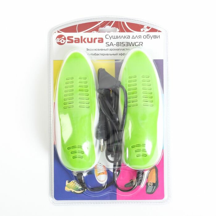 Сушилка для обуви Sakura SA-8153WGR, 60-75С, арома-пластик, антибакт., зелено-белый SAKURA 2904515