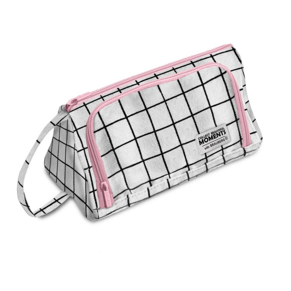 Купить Пенал-косметичка BRAUBERG с ручкой, 1 откидная планка, полиэстер, 22x10х8 см, "Checkered white"
