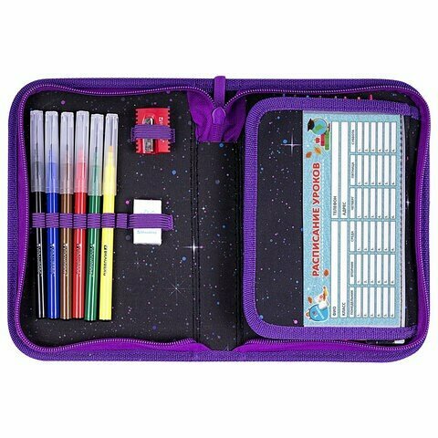 СохранитьПенал BRAUBERG с наполнением, 1 отделение, 1 откидная планка, 24 предмета, 21х14 см, "Neon cat", 271523 интересное:
