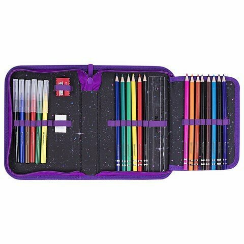 Пенал школьный с наполнением для ручек, карандашей для девочки / подростка Brauberg 1 отделение, откидная планка, 24 предмета, 21х14см, 271523