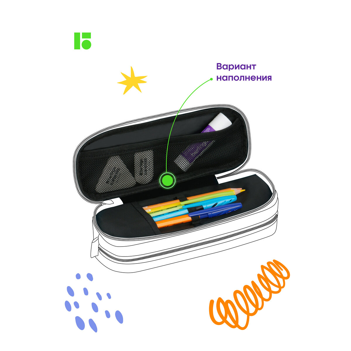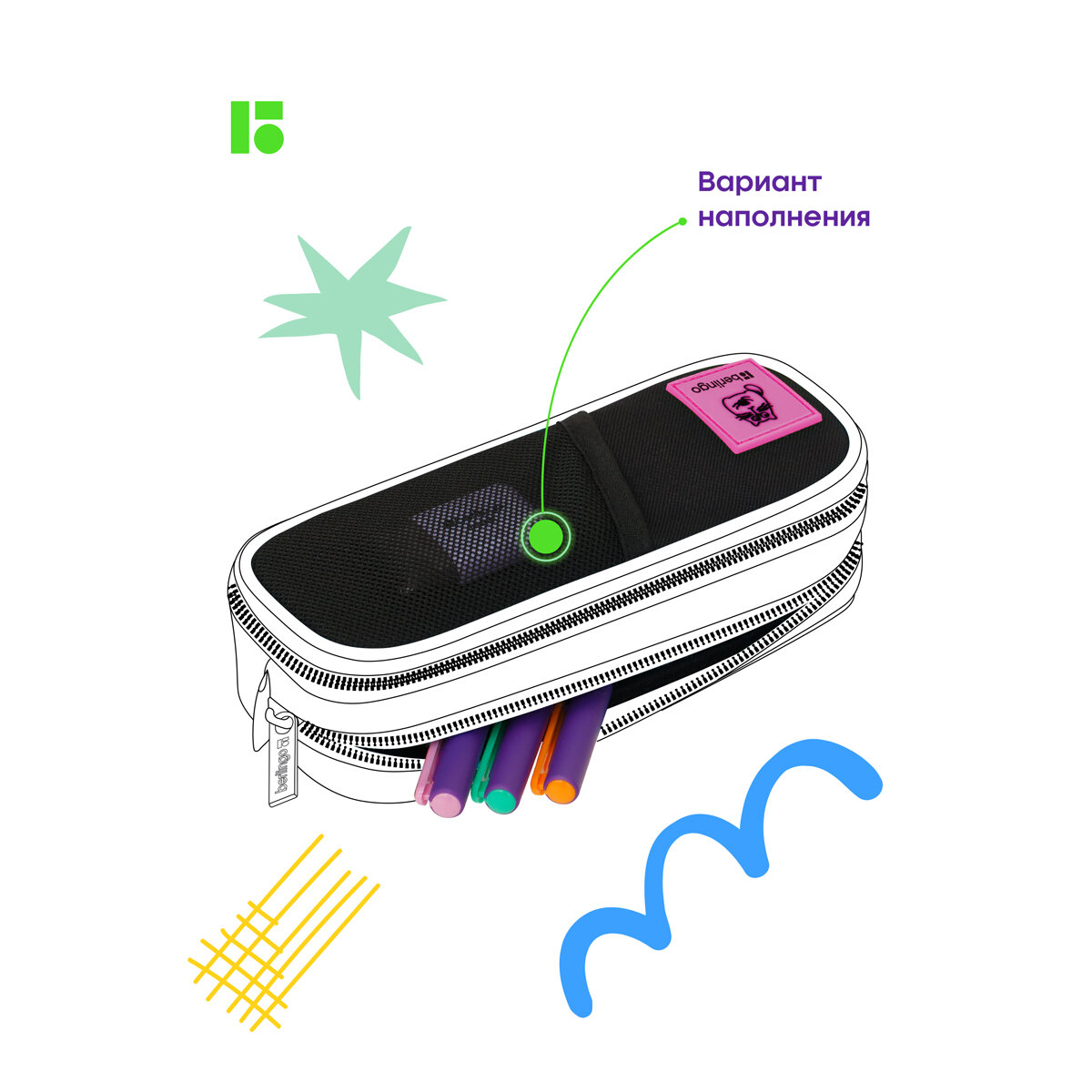 | Дополнительная информация | Внутри переднего отделения имеется 2 кармашка из сетки и резиночки-крепления для канцтоваров |